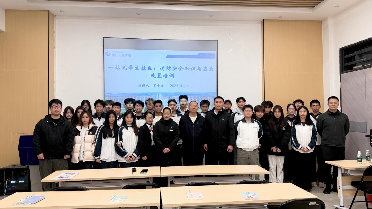 为切实筑牢“一站式”学生社区消防安全屏障,提升学生应急避险与处置能力,11月20日,医药卫生学院“一站式”学生社区消防安全知识与应急处置培训工作坊在2号学生公寓110室如期举行。保卫处消防专员夏金波担任主讲,虹宇物业主管黄华毅、医药卫生学院辅导员马阳明、张琦及学生代表共同参与此次培训。