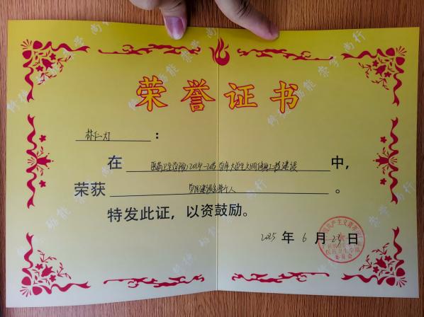 在暑期三下乡过程中,他与团队成员密切合作,面对困难从不退缩。他说:“失败并不可怕,可怕的是失去继续前行的勇气。”正是这种坚持不懈的精神,让他在一次次挑战中不断成长。