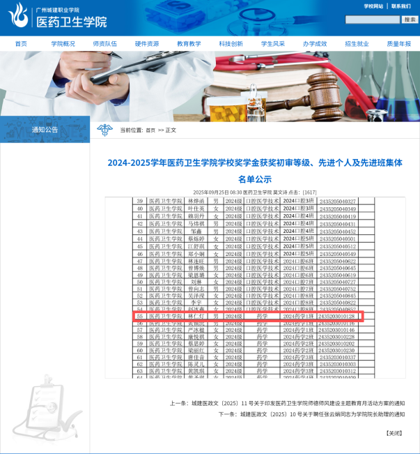 6.医药卫生学院 2024-2025 学年大学生文明修身工程建设学风建设先进个人