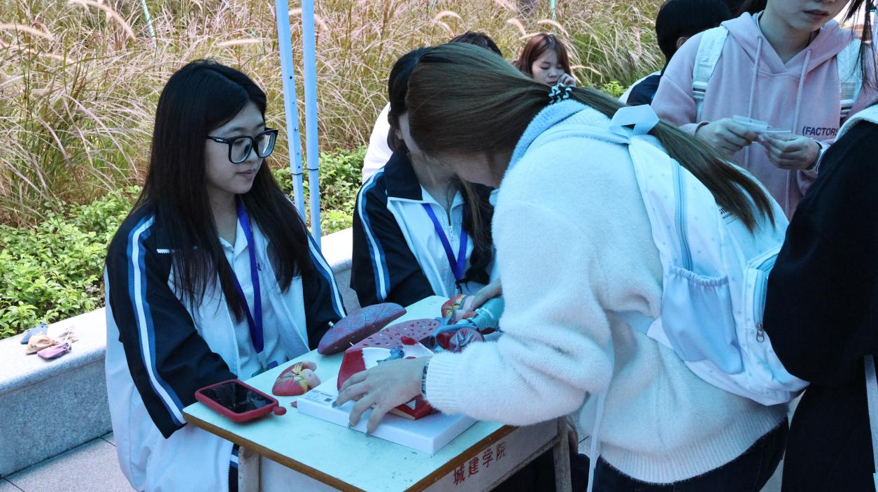 “圈住健康”套圈游戏通过在地上摆放各类健康小礼品,同学们用套圈赢得实用奖品,现场欢声笑语不断。“知己知彼”健康知识问答结合秋冬传染病预防、急救常识等主题,同学们随机抽取题目作答,在互动中巩固实用健康知识。人体模型拼装挑战,参与者需在3分钟内独立完成人体躯干模型拼装,既考验专业认知,也提升了动手能力。