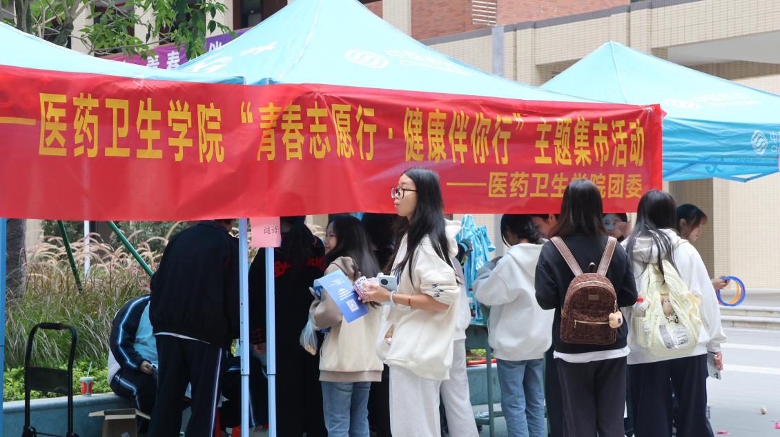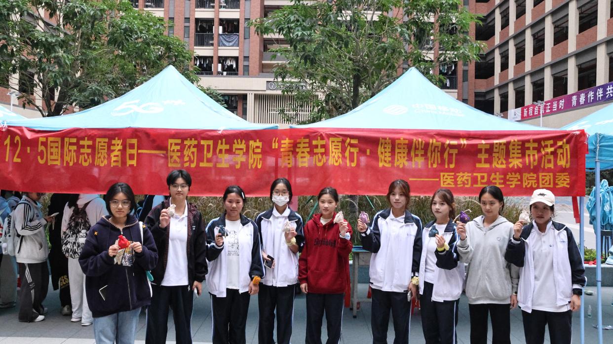 2025年12月5日是第40个国际志愿者日。为弘扬志愿精神、融合专业特色与服务实践,医药卫生学院团委于12月4日在清远校区7号学生公寓一楼空地成功举办“青春志愿行·健康伴你行”主题集市活动。活动围绕健康知识普及与互动体验,设置了五大特色摊位,吸引众多师生参与,在轻松氛围中传递健康理念,展现医药学子的专业风采。