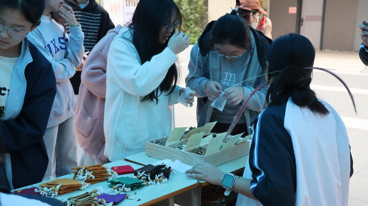 “巧手杏林”摊位前人气高涨,艾叶、丁香、薄荷、陈皮等中草药一字排开。志愿者细致讲解药材功效,同学们兴致盎然地调配个人专属香囊,在动手实践中感受中医药文化的独特魅力。