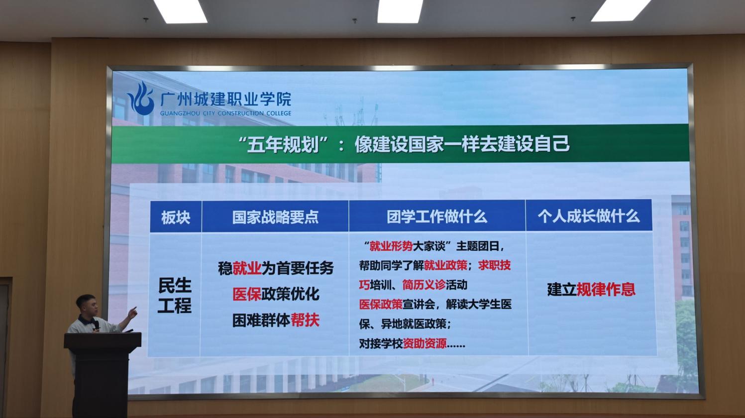 讲座最精彩的环节,当属陈老师将国家“十五五”规划的十大发展板块,与团学工作举措、个人成长路径一一对应,深入浅出地阐释了“大我与小我”的同频共振。他特别强调:二十岁到二十五岁,是一个人价值观定型、能力提升、视野拓展的关键期;而未来五年,恰是国家迈向现代化的重要节点。“这不是巧合,这是时代赋予你们的使命。”陈老师的话引发在场同学的深思与共鸣。