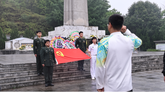 面对鲜红的中国共产党党旗,全体党员高举右拳、庄严宣誓,重温入党誓词。铮铮誓言铿锵有力、催人奋进,既是对革命先辈革命精神的传承与致敬,更是青年党员坚守初心使命、勇担时代重任的庄严承诺。活动最后,师生们分组有序擦拭烈士墓碑,以实际行动表达对英烈的缅怀与敬仰,祭扫仪式结束后,全体师生在纪念碑前集体合影留念,定格这一具有特殊意义的时刻。