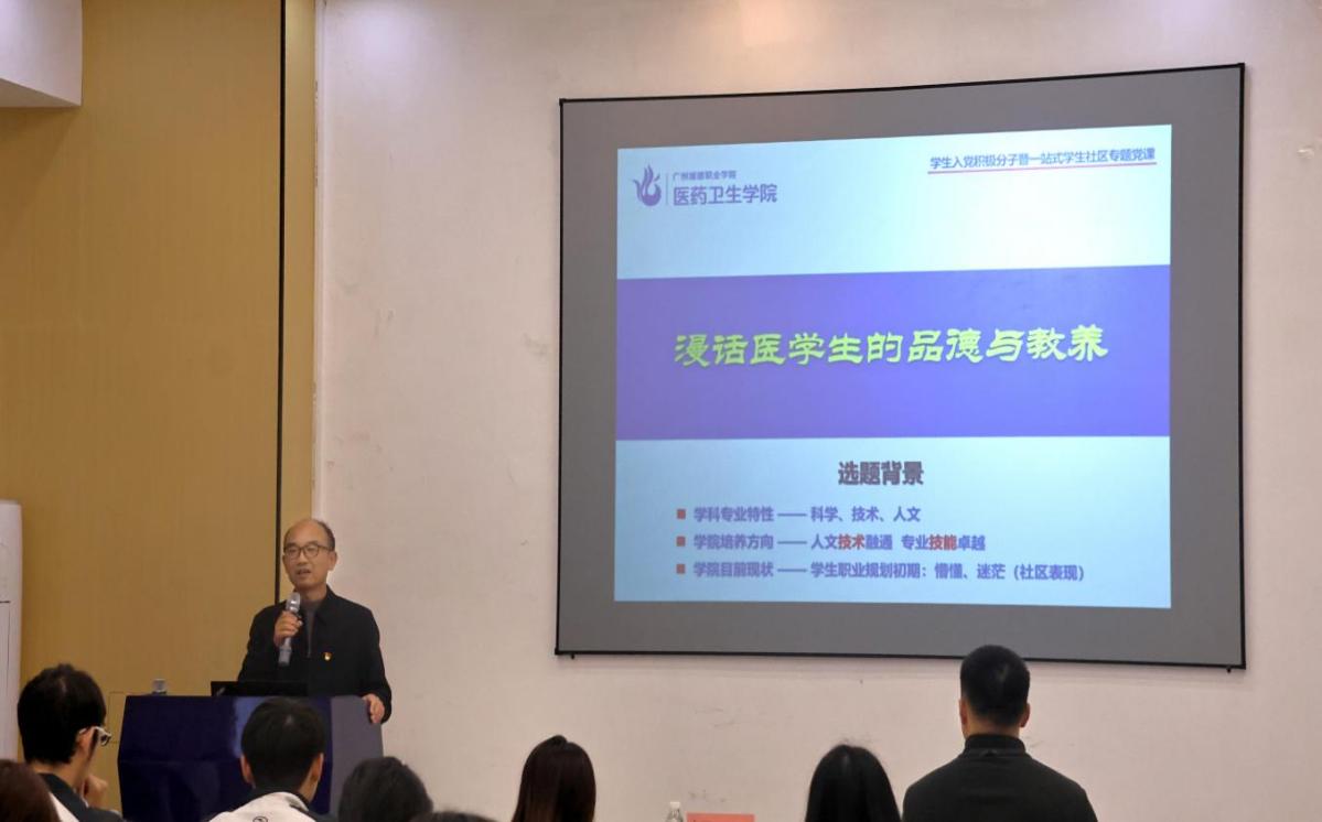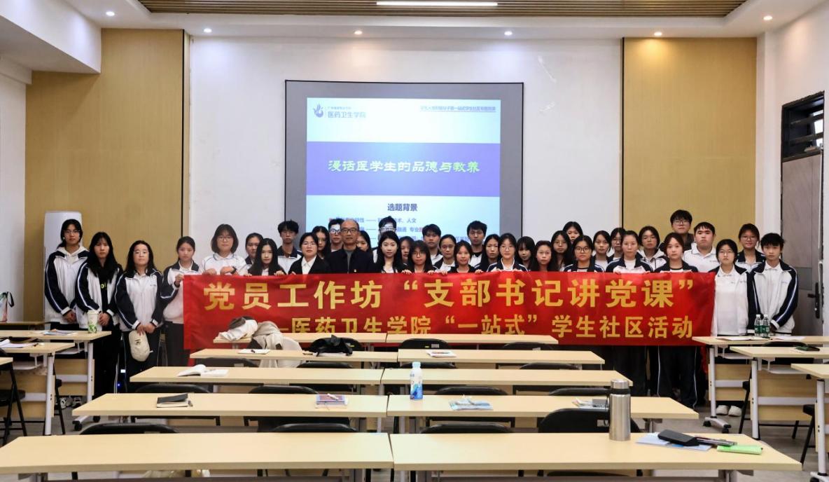 为深化“一站式”学生社区育人体系建设,充分发挥党员先锋模范作用,夯实医学生品德修养根基,11月13日,医药卫生学院成功举办“一站式”学生社区育人工作坊暨党员工作坊活动。学院“一站式”学生社区建设工作领导小组组长、学院院长、直属党支部书记孙维权担任主讲,以“漫话医学生的品德与教养”为主题,融合医学人文教育与党员思想淬炼,为入党积极分子及社区学生带来一堂兼具思想深度与实践温度的育人课程。