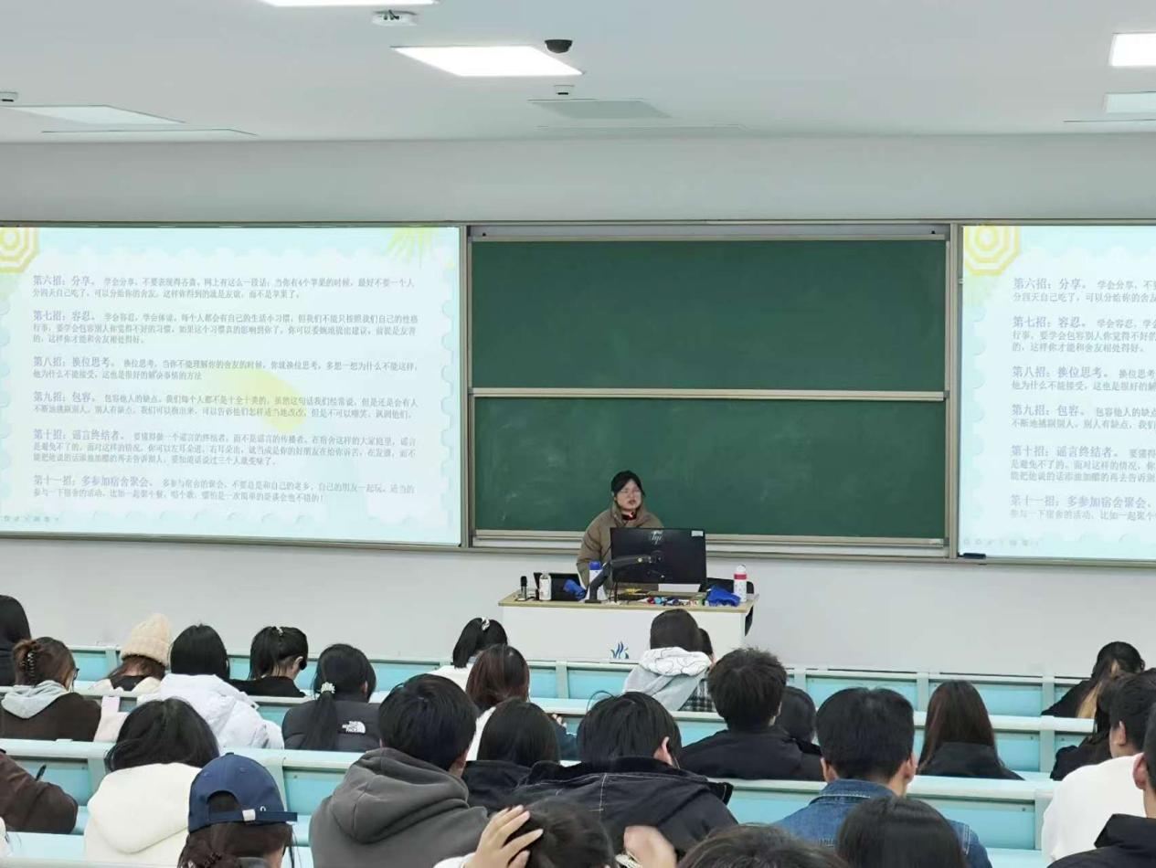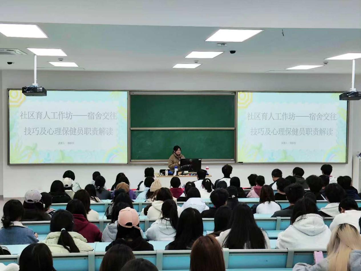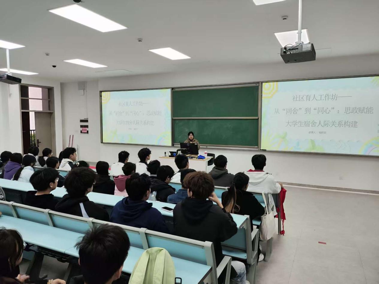 为深入推进“一站式”学生社区综合育人体系建设,切实破解宿舍人际关系难题,夯实校园育人前沿阵地,11月20日,我院成功举办“从‘同舍’到‘同心’:思政赋能大学生宿舍人际关系构建”主题育人工作坊。本次活动由杨积兰老师主讲,各年级宿舍长及学生代表齐聚一堂,共同探讨相处之道,凝聚宿舍共识,营造和谐氛围。