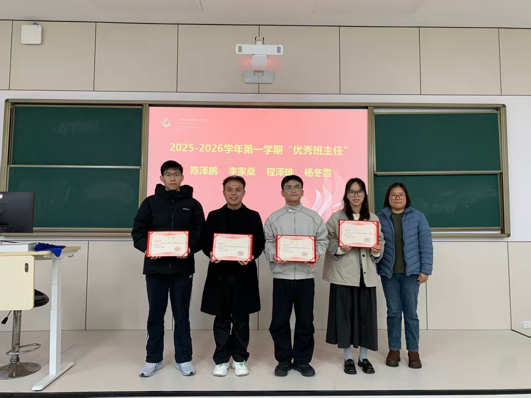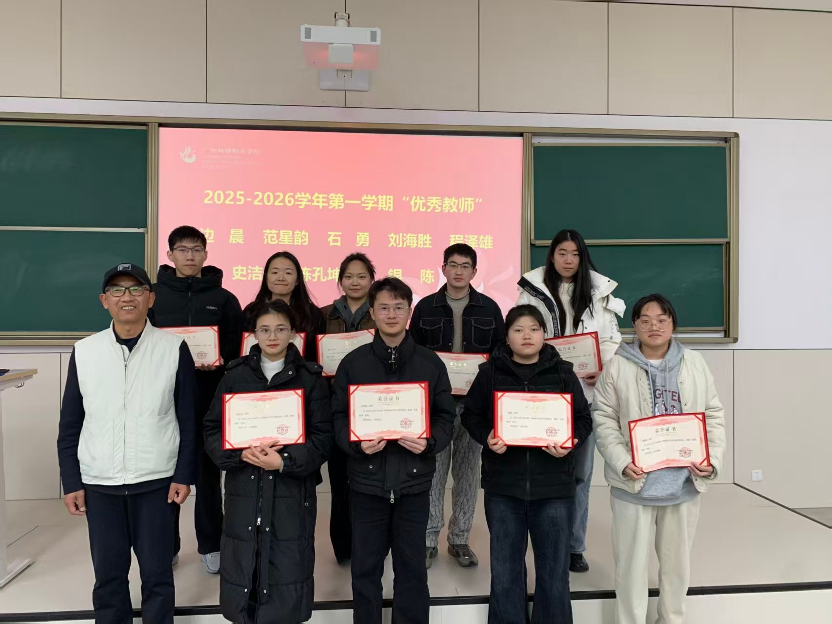 副院长郑卓琳宣读《医药卫生学院关于表彰2025—2026学年第一学期先进个人的决定》。随后,孙维权、何笑薇、郑卓琳、张云娟及学院教授共同为受表彰的先进个人颁发荣誉证书。会场响起热烈掌声,向获奖教师致以诚挚祝贺。