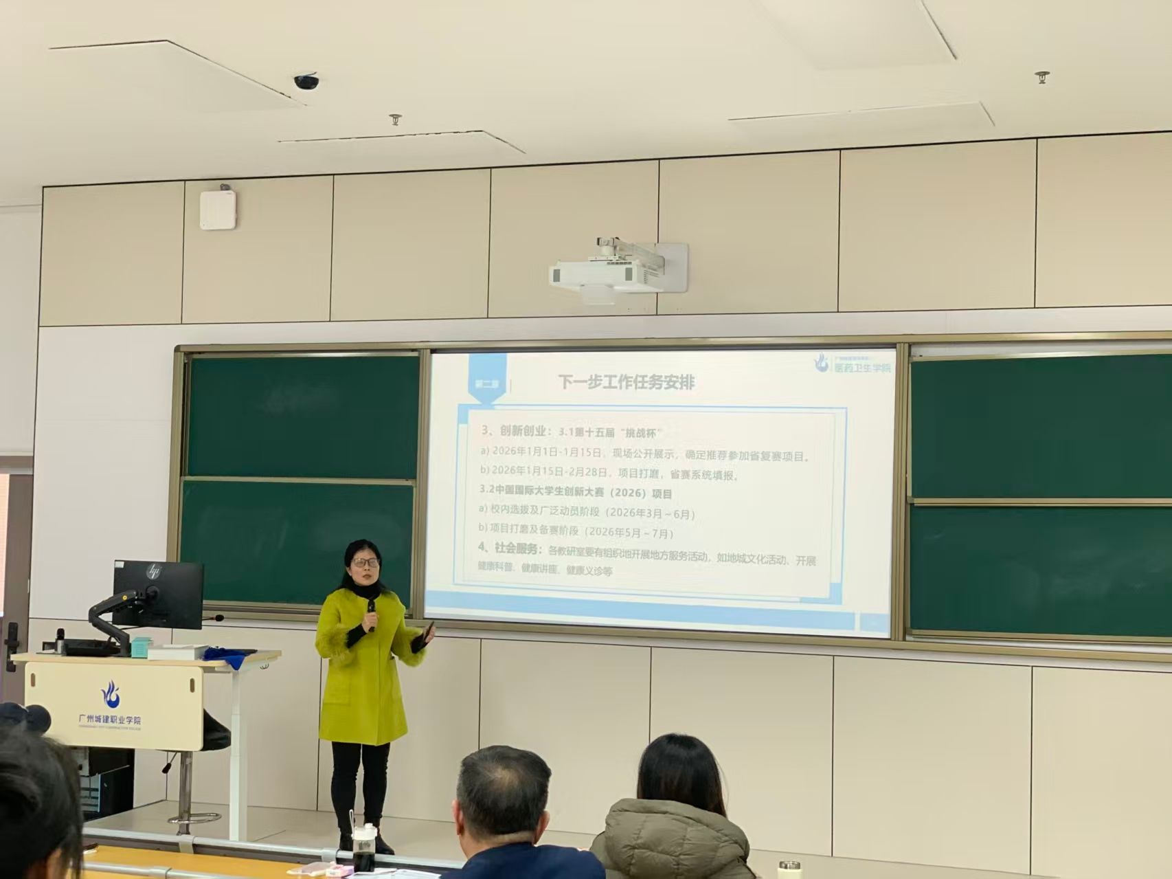 副院长何笑薇围绕“提质增效、特色赋能”主题,明确2026年三大任务:一是优化专业布局与实训基地建设,为深化校企合作提供硬件支撑;二是完善学生培养体系,加强心理健康与职业规划指导;三是筑牢校园安全防线,健全风险防控长效机制。