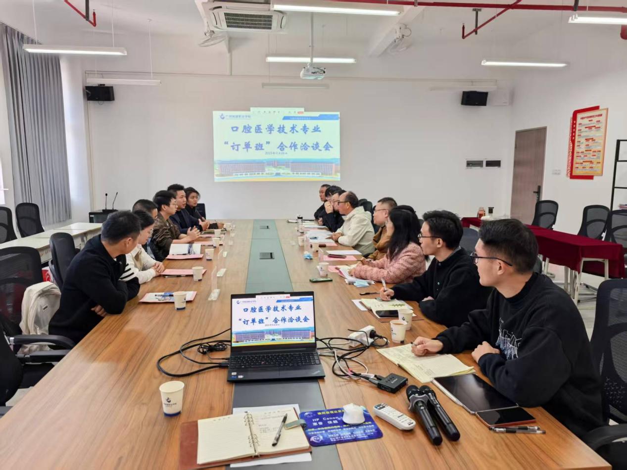 为深化产教融合、破解口腔医学技术行业人才供需结构性矛盾,11月26日,我院迎来深圳康泰健医疗科技股份有限公司、康泰健美医疗科技(深圳)有限公司、深圳市三专医疗科技有限公司三家行业领军企业,开展“1.5+1.5”订单班合作洽谈,并面向24级口腔专业学生举办专场宣讲会,吸引上百名学子到场咨询参与,现场互动热烈。